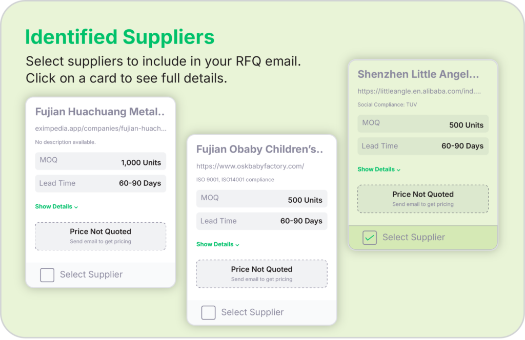 Join thousands of brands, procurement teams and sellers using AI to transform their sourcing workflow.