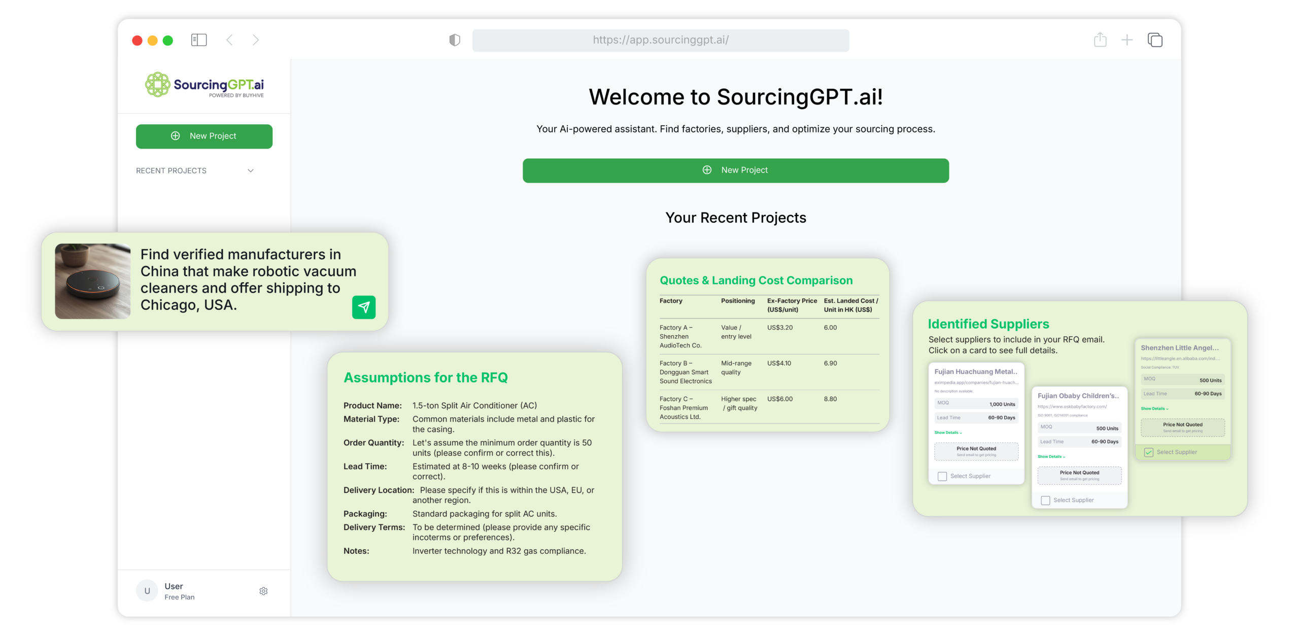 SourcingGPT.ai brings together deep sourcing expertise and advanced AI to transform how buyers, brands, and procurement teams discover suppliers, run RFQs, communicate with factories, and calculate landed costs.